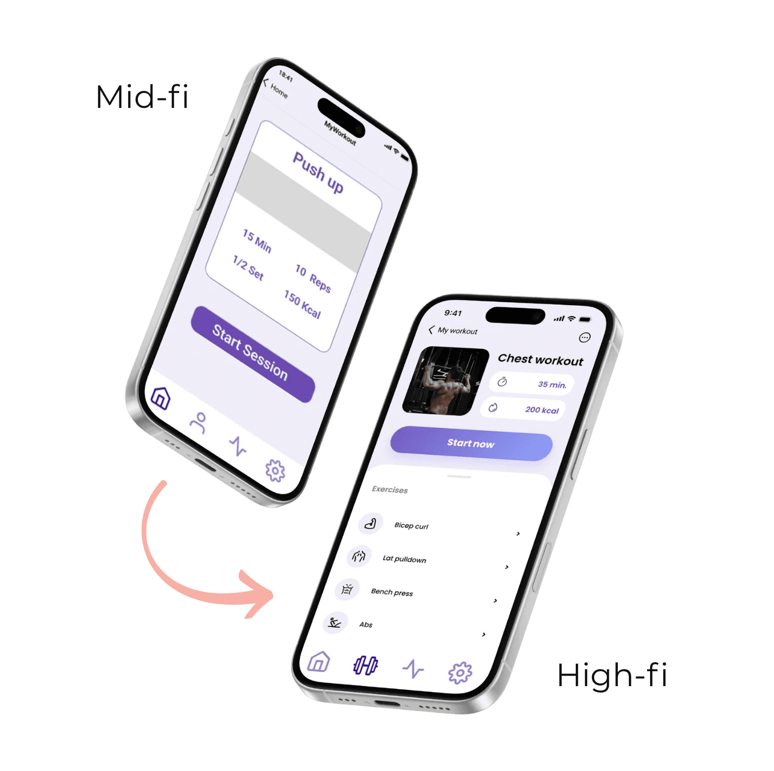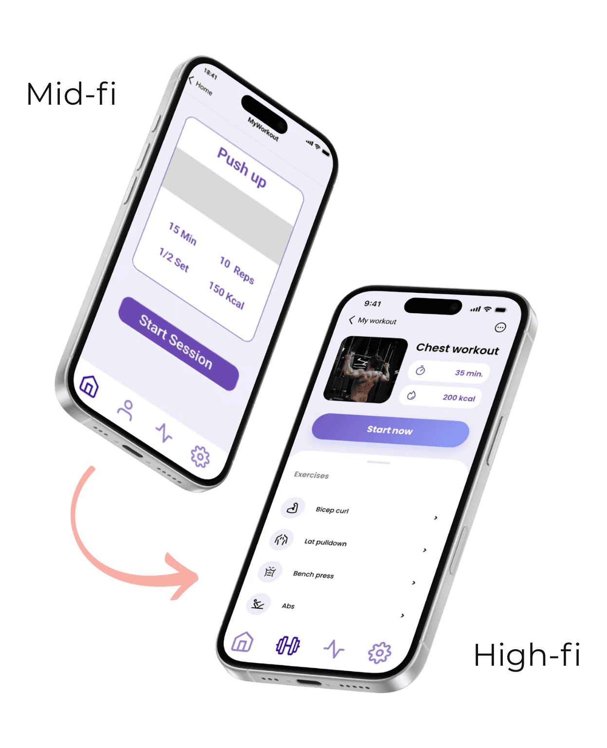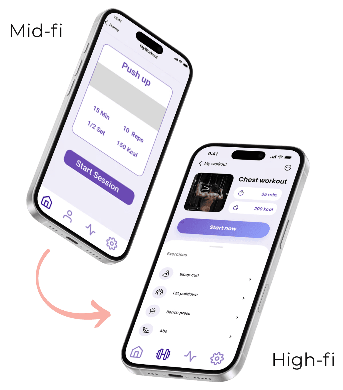 Low- and mid-fidelity prototypes helped us structure workouts and stats logically.